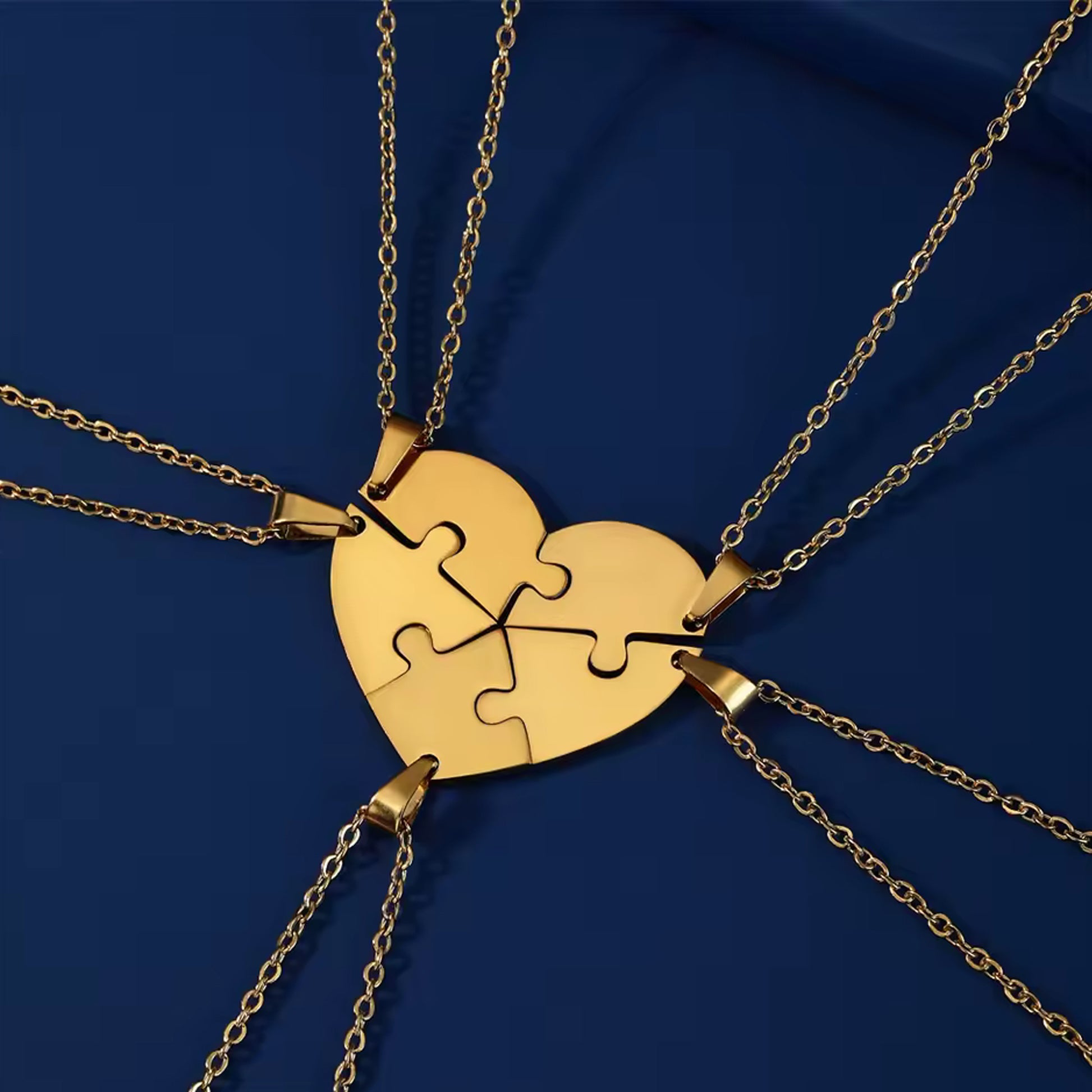 La Collana Heart è molto più di un semplice accessorio, è un simbolo di amore, famiglia e amicizia, pensato per essere condiviso con le persone più importanti della tua vita. Grazie al suo design a puzzle, ogni pezzo rappresenta un legame unico e può essere personalizzato con un nome inciso.